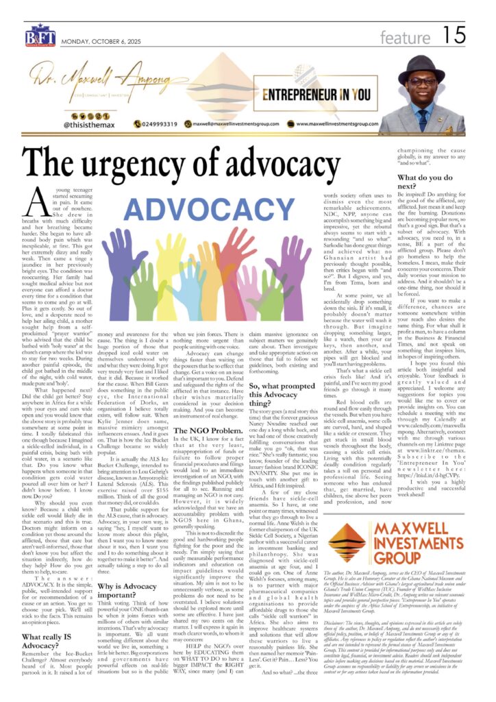 If you want to make a difference, chances are someone somewhere within your reach also desires the same thing. For what shall it profit a man, to have a column in the Business & Financial Times, and not speak on something that inspires him, in hopes of inspiring others.